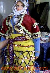 Antalya yöresi gelini kıyafetlerini giymiş bir kitre bebek hazırladım 1 ay önce.Uzuzn zamandır okulda vitrinde bende geçen hafta resimlerini çektim.Yemenisinde firkete işi boncuklar var.Önlüğü gümüş rengi pulla işledim .üzerindeki kısa kadaife cekette dantel ve pul işli.Mavi üç eteğindede su taşları var.Çorapları elde işlendi.Patşkleride kitreden teslim alınca tüm detaylarını fotoğraflayacağım.